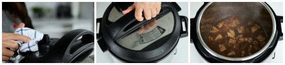 - When it’s finished cooking, the Instant Pot will switch automatically to the Keep Warm mode. Let the pressure release naturally, about 15–20 minutes. Open the lid and take out the inner pot.