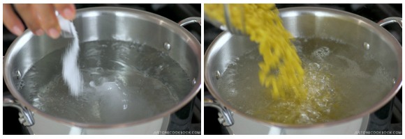 - Meanwhile, in a large pot of boiling water, add 2 Tbsp Diamond Crystal kosher salt and cook 1½ cups uncooked elbow macaroni according to the package instructions, but cook 1 minute less than instructed as it’ll cook further in the frying pan. Drain well and set aside.