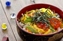 Each region in Japan serves a slightly different version of chirashi sushi with various ingredients and toppings.